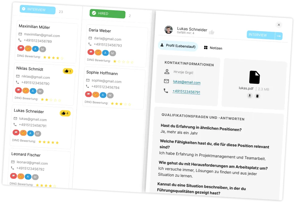 Sie kontaktieren die Kandidaten. 📞
